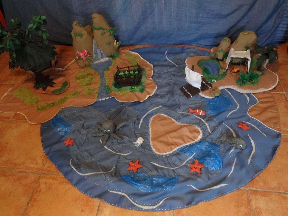 Ce premier tapis devait nous servir à raconter l'histoire de Robinson, mais avec le même décor et de nouveaux personnages, nous pourrons faire pleins d'autres histoires.